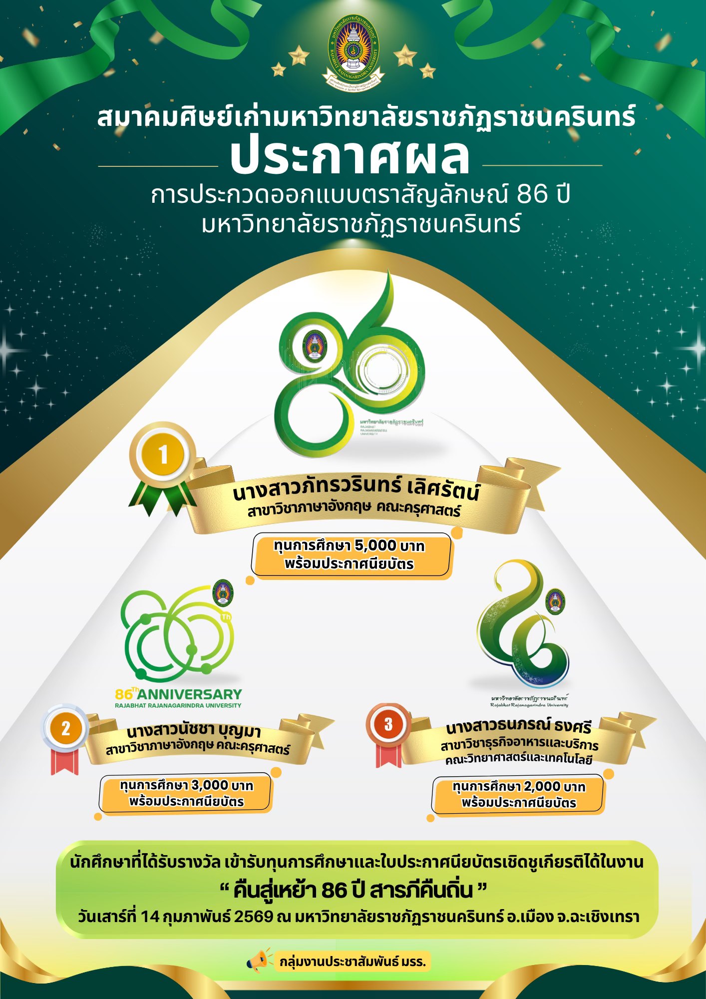 ประกาศผลการประกวดออกแบบตราสัญลักษณ์ ครบรอบ 86 ปี มหาวิทยาลัยราชภัฏราชนครินทร์